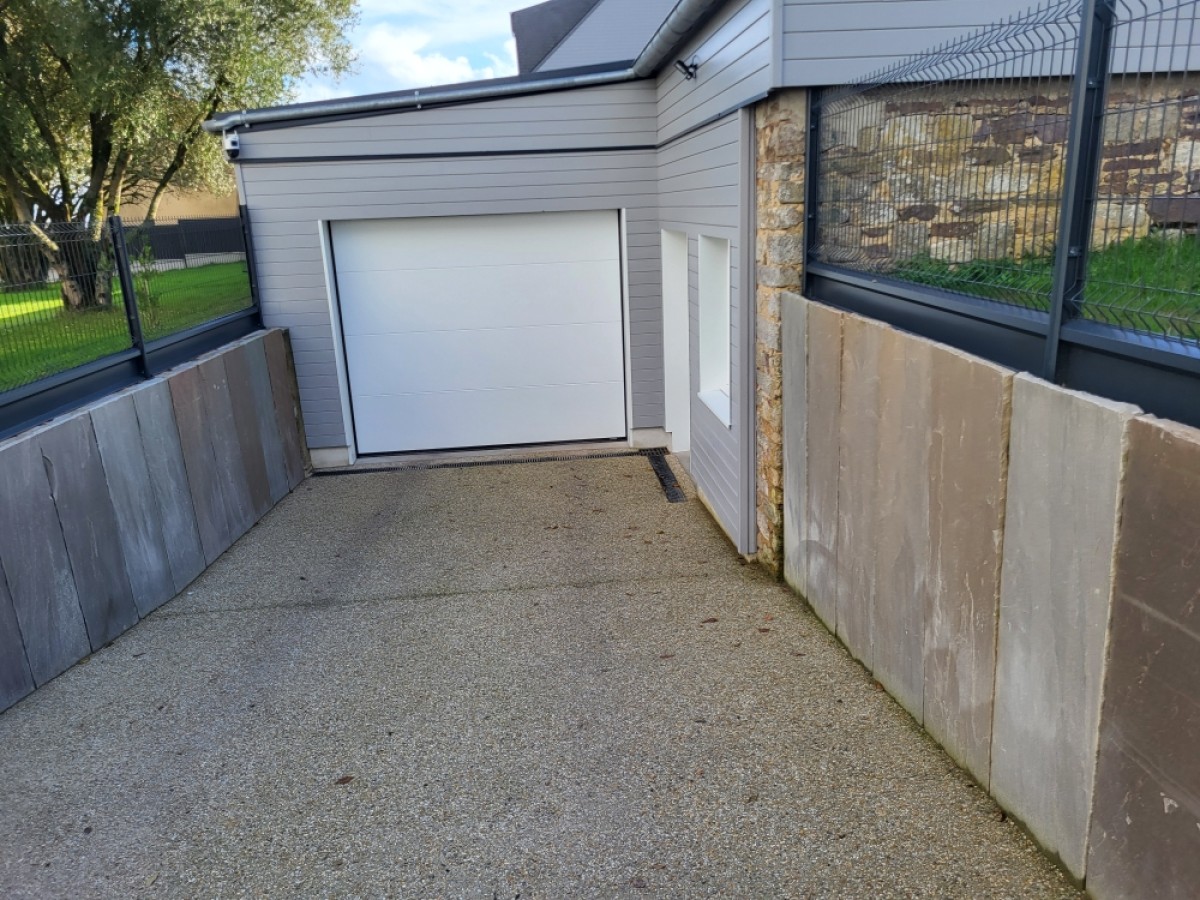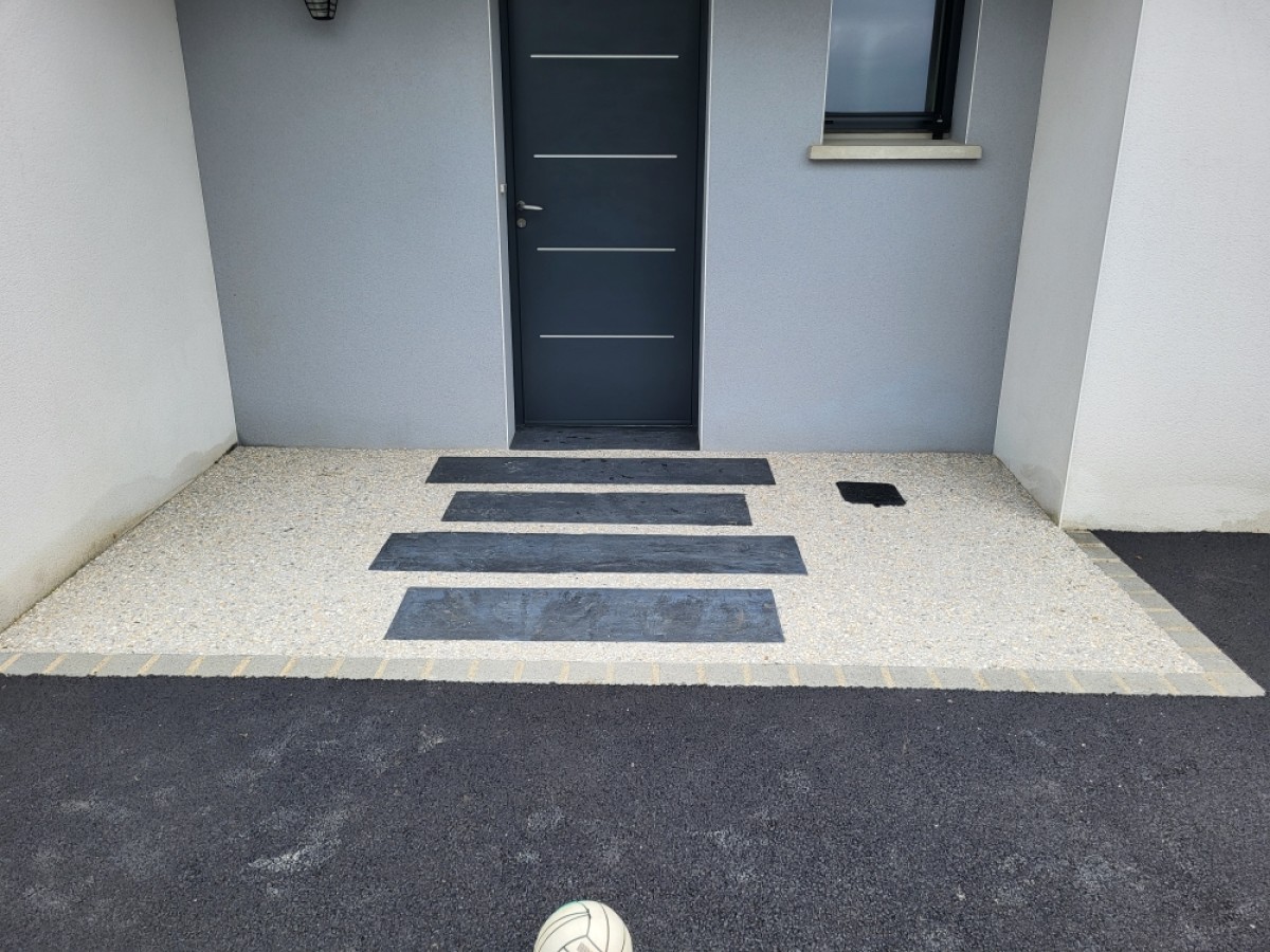 • entrée en béton désactivé avec palis d'ardoise en insertion